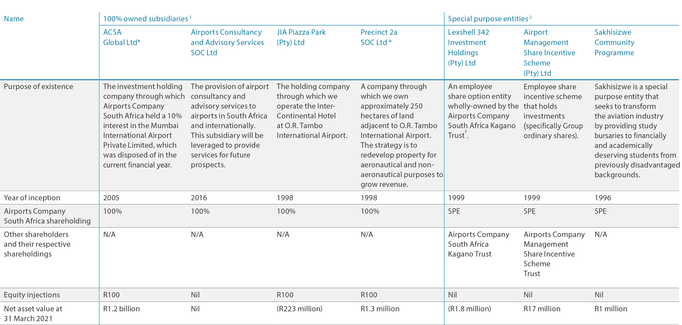 1 Subsidiaries are all entities – including special purpose entities (SPE) – over which the Airports Company South Africa has control, generally evidenced by a shareholding of more than half of the voting rights.