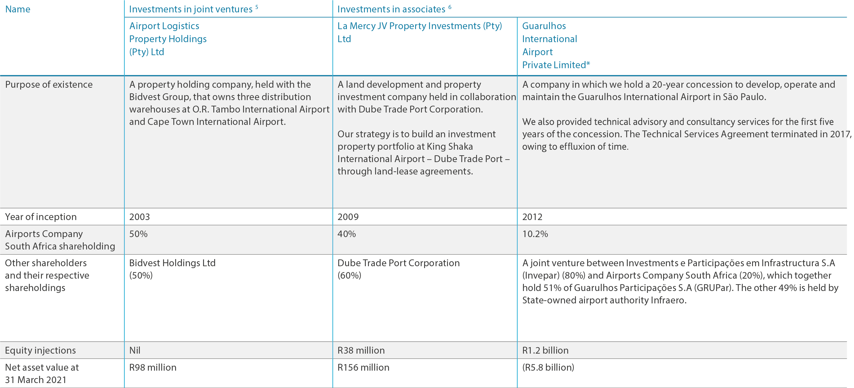 5 Joint ventures are entities over which Airports Company South Africa has joint control over the economic activity through a contractual planning arrangement. Airports Company South Africa recognises its interests in the joint venture using equity accounting.