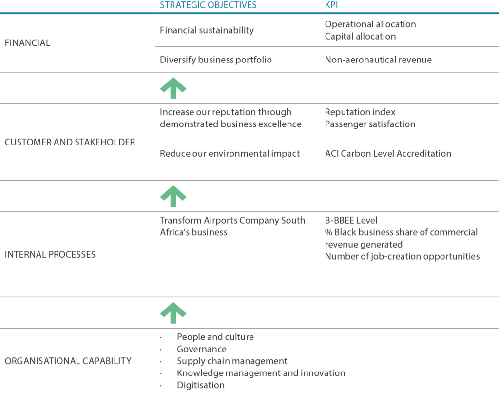 As a result of COVID-19, the Company’s Strategy 2025 has been reviewed and reset to guide Airports Company South Africa through the trying economic times and optimise short-, medium- and long-term value creation. Our strategic pillars of Run airports, Develop airports and Grow our footprint continue to uphold our vision and endure in our revised strategy. Our overall strategy remains intact and is in line with airports globally.