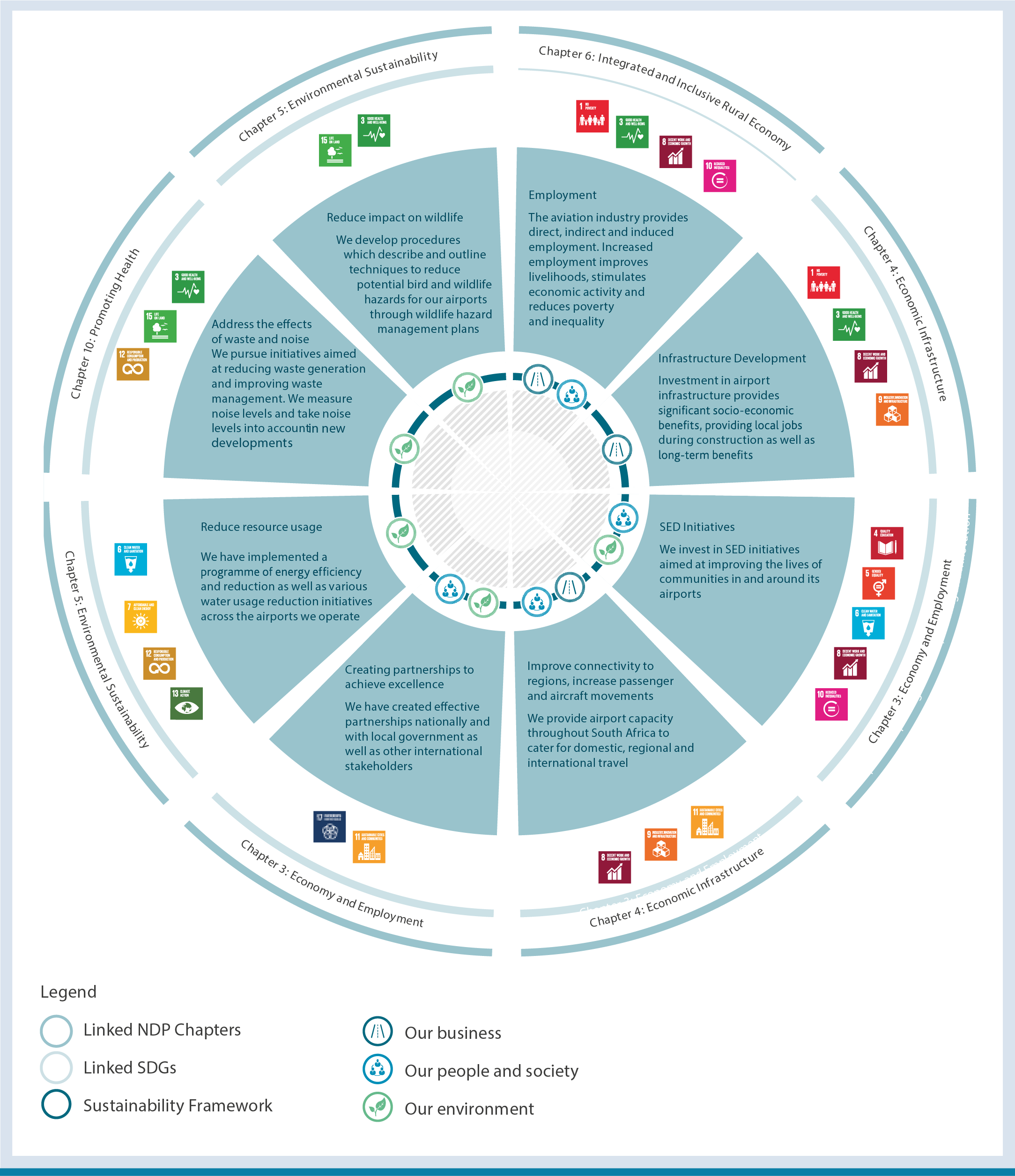 In line with the NDP and the SDGs, we aim to create sustainable value and minimise our negative impacts on the societies and environments in which we operate.